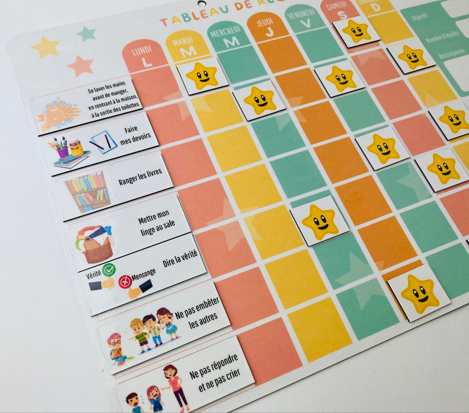 On adore les étoiles, mais on aime encore plus les enfants fiers d’eux ! Ce tableau rend les routines plus simples, plus visuelles, plus efficaces.