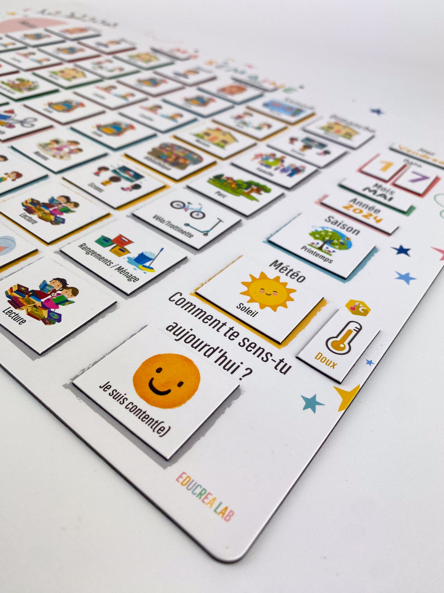 Avec ses couleurs vives et ses pictos simples, ce semainier aide ton enfant à se repérer, anticiper, et mieux vivre chaque jour. Résultat : plus d’autonomie et moins de stress pour tout le monde !