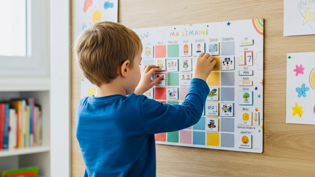 Avec ses couleurs vives et ses pictos simples, ce semainier aide ton enfant à se repérer, anticiper, et mieux vivre chaque jour. Résultat : plus d’autonomie et moins de stress pour tout le monde !