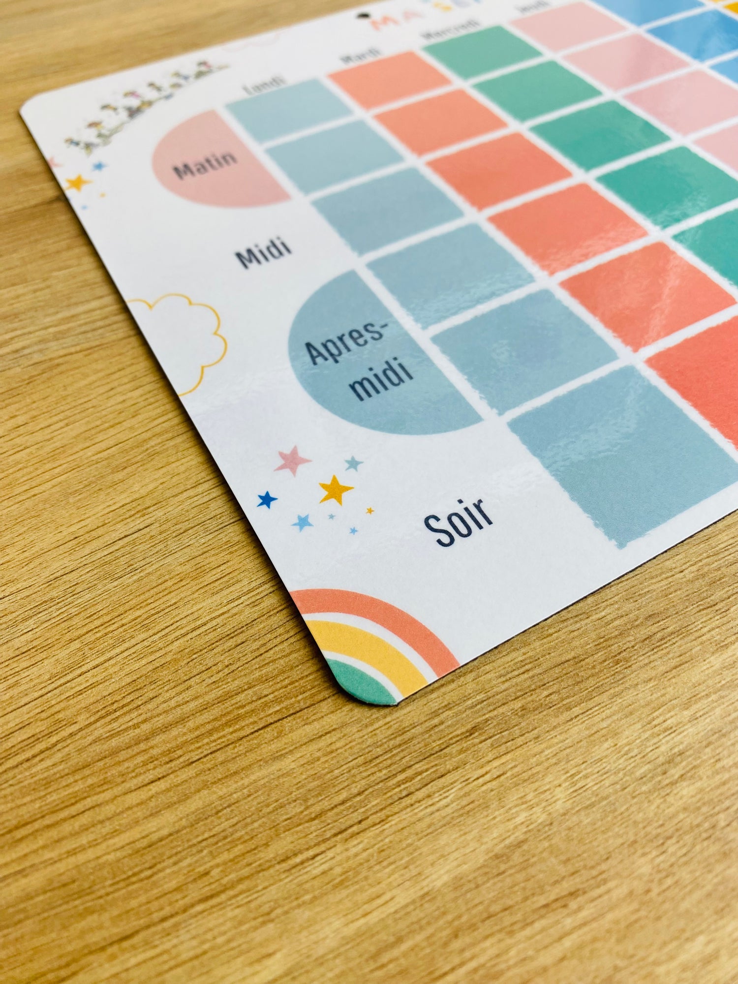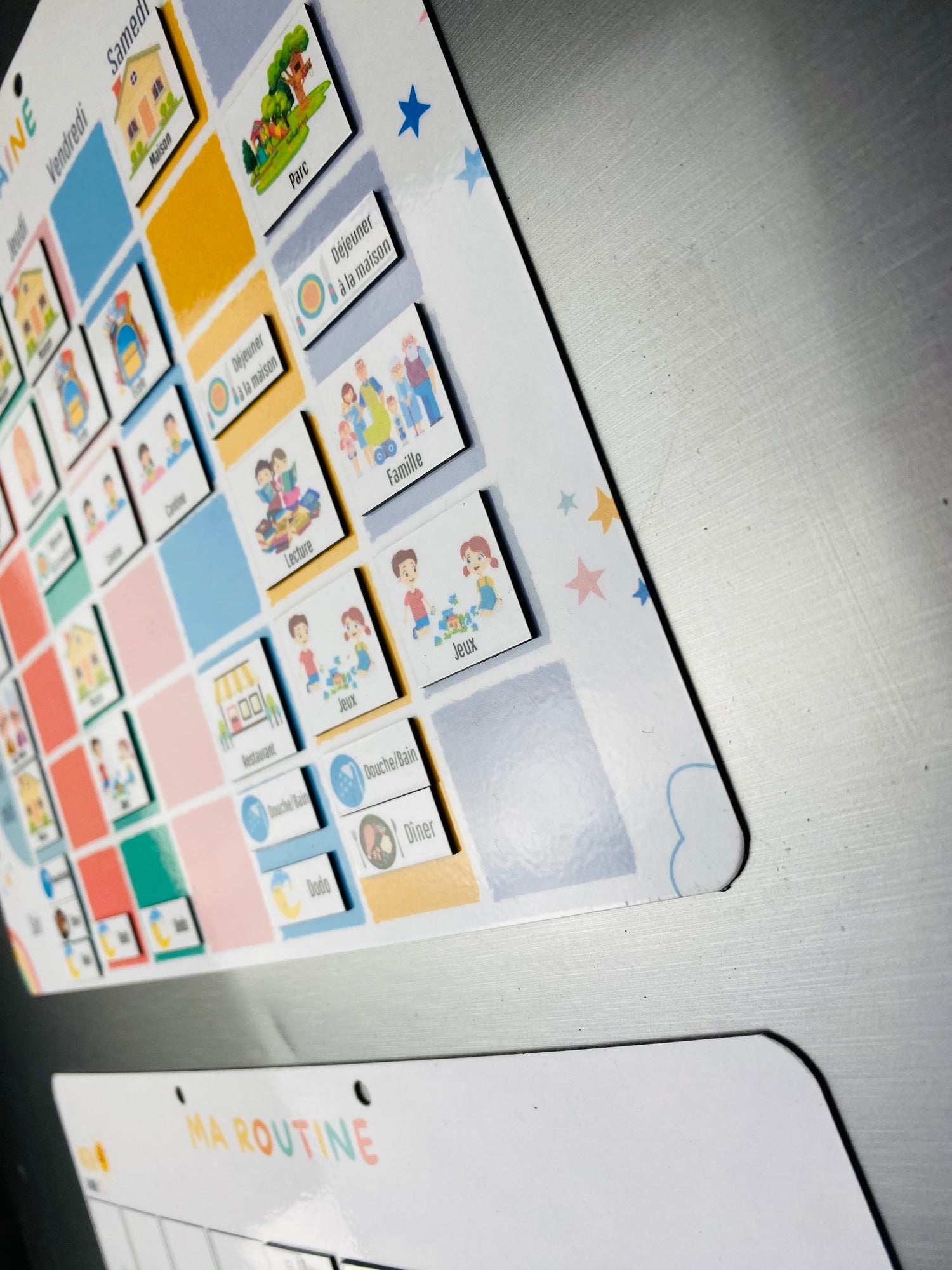 Petit semainier magnétique enfant A4 🗓️ 100 magnets inclus pour organiser la semaine, gagner en autonomie et réduire le stress familial.