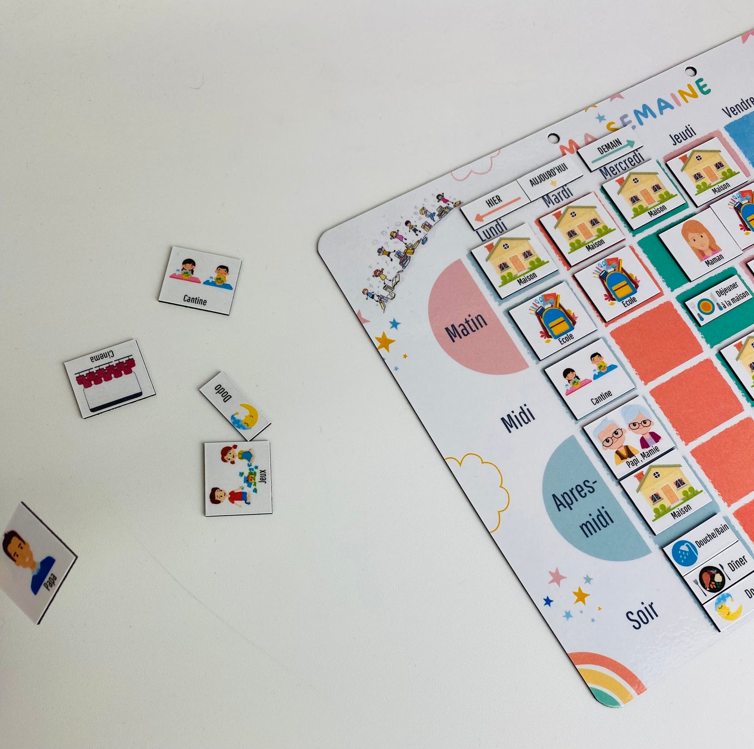 Petit Semainier Magnétique évolutif Enfant - format A4 – 100 Magnets Activités – Organisation Semaine & Autonomie - inspiration Montessori